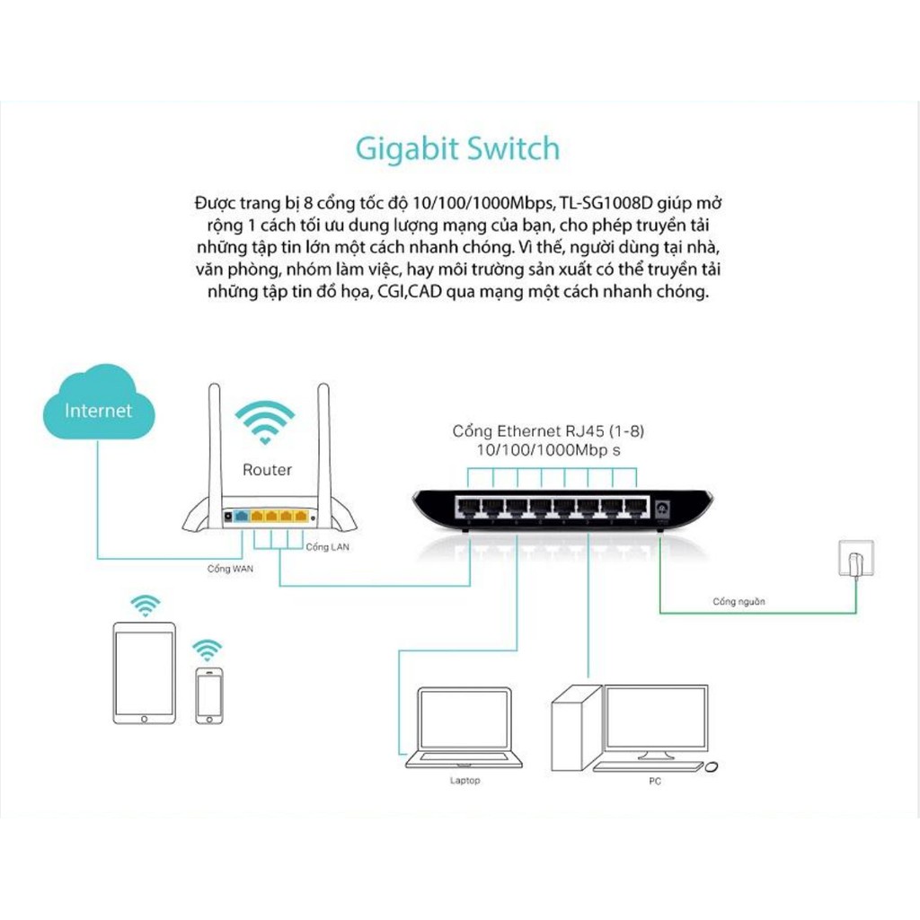 Máy tính & Laptop > Thiết Bị Mạng > Bộ chia mạng || TP-Link gigabit 8 cổng Bộ chia tín hiệu Switch RJ45 10/100/1000Mbps - TL-SG1008D - Hàng Chính HãngCòn hàng