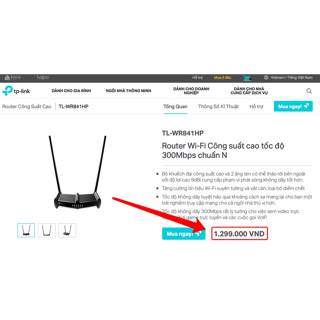 Máy tính & Laptop > Thiết Bị Mạng > Bộ Phát Wifi || [Mã 273ELHA100K0 hoàn 7% đơn 500K] TP-Link N 300Mbps Công suất cao Router Wi-Fi -TL-WR841HP - Hàng Chính HãngCòn hàng