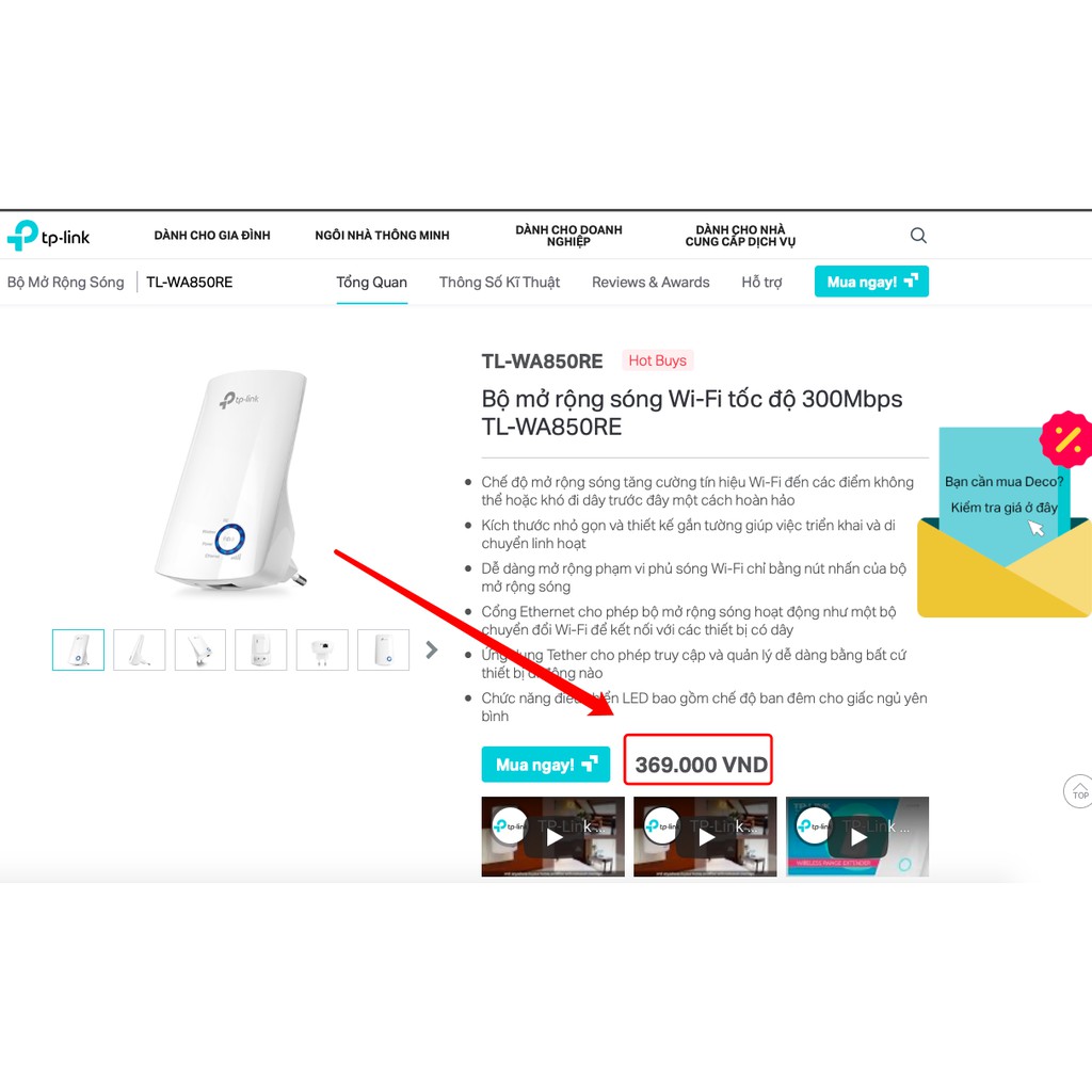 Máy tính & Laptop > Thiết Bị Mạng > Bộ Kích Wifi || TP-Link N 300Mbps Mở rộng sóng Wifi Kích sóng wifi Tăng cường mạng Wifi -TL-WA850RE - Hàng Chính HãngCòn hàng