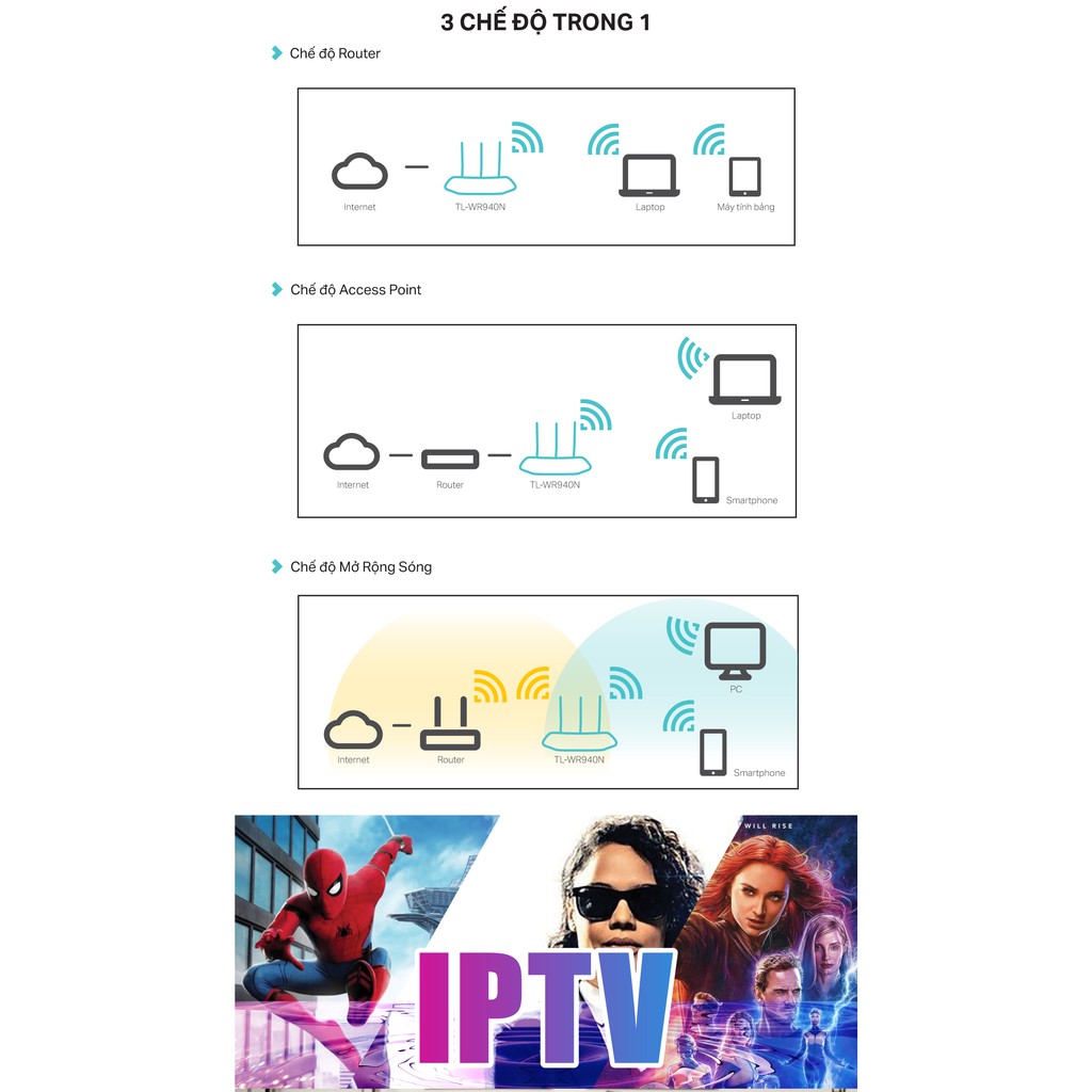 Ngoài ra, router TL-WR940N cũng hỗ trợ tính năng IPTV