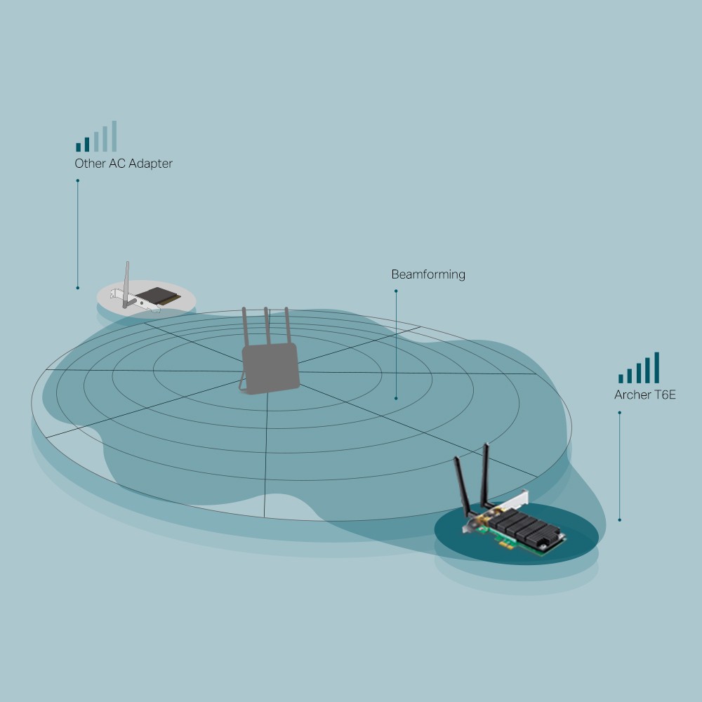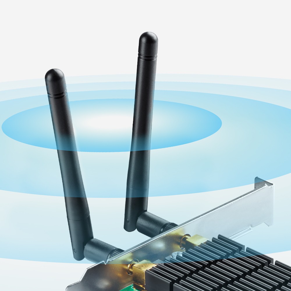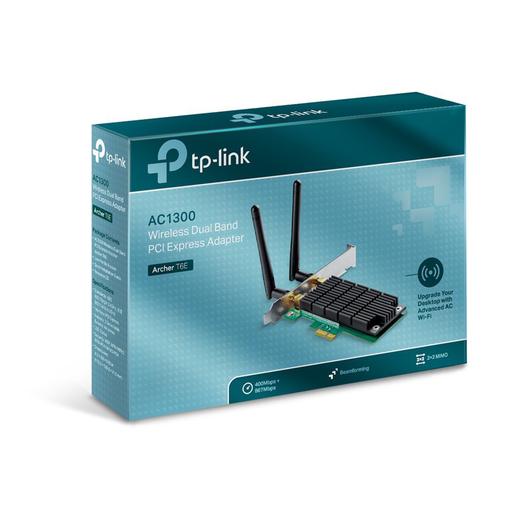 Cài đặt dễ dàng - Nâng cấp hệ thống để bàn của bạn đơn giản bằng cách cắm bộ chuyển đổi Wi-Fi Archer T6E vào khe cắm PCI-E.Wi-Fi tốc độ cao - Tốc độ lên đến 1300Mbps (867Mbps ở băng tần 5GHz và 400Mbps ở băng tần 2.4GHz)