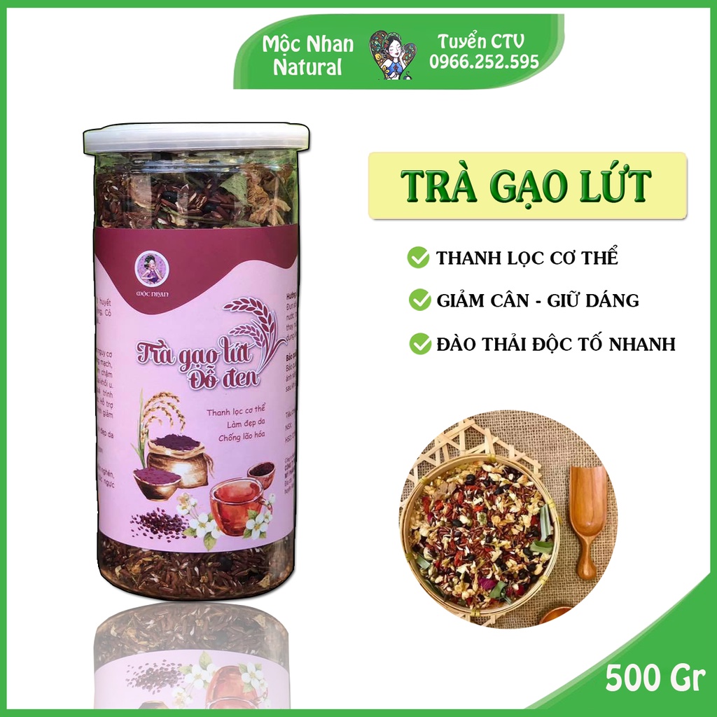 - Gạo lứt, gạo huyết rồng, đỗ đen xanh lòng, cỏ ngọt, lá nếp, hoa nhài, lá dứa. Uống thường xuyên giúp thanh lọc cơ thể, làm đẹp da và chống lão hóa. Ngoài ra, giúp an thần, ngủ ngon, chống oxy hóa và giảm nguy cơ tim mạch, xơ vữa động mạch. Tác động lên quá trình chuyển hóa chất béo, hỗ trợ giảm cân.