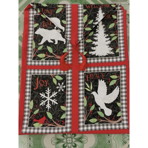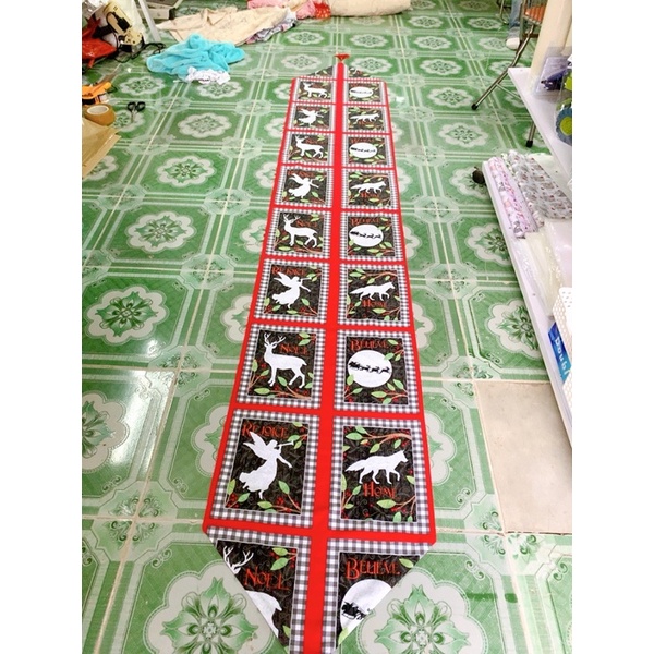 Tấm trải bàn- Khăn Trải bàn- Table runer- Tấm phủ đàn pianoTấm trải bàn table runner vải thô cà bông hoạ tiết Giáng sinh năm mới cho không gian ngày lễ thêm ấm cúng và rực rỡ