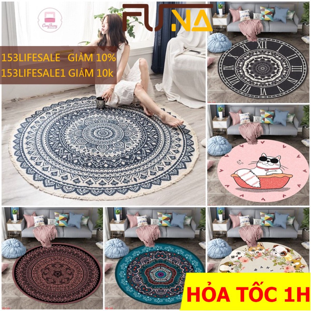 𝐓𝐡𝐚̉𝐦 Trải Sàn 𝐁𝐚𝐥𝐢 hình tròn Trải Sàn Trang Trí Cao Cấp - Thảm Lì Bali Hàng Đẹp ( Mặt Sau đế cao su Chống Trơn Trượt)