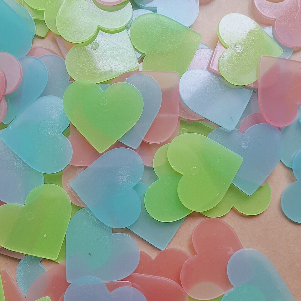 Trái tim dạ quang trang trí tường, 1 bịch 100 cái, kích thước trái tim 4cm.Sản phẩm có kèm theo keo hai mặt để dán lên tường.