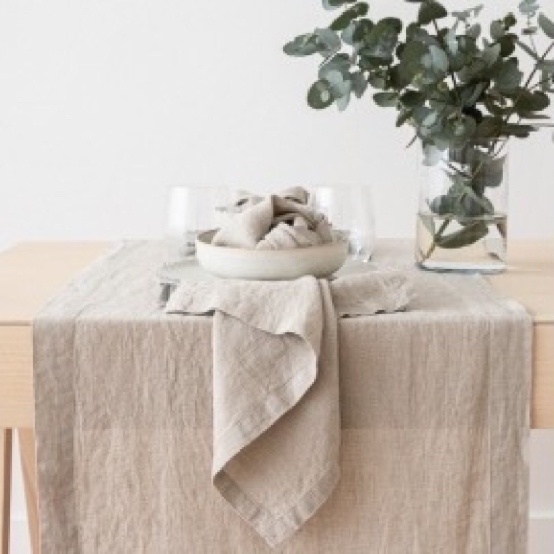 Tấm trải bàn table runner vải linen vô cùng trang nhã, mộc mạc.Có các kích thước: 33*160cm, 33*180, 33*200, 33*220cm, 33*240cm, 33*280cm