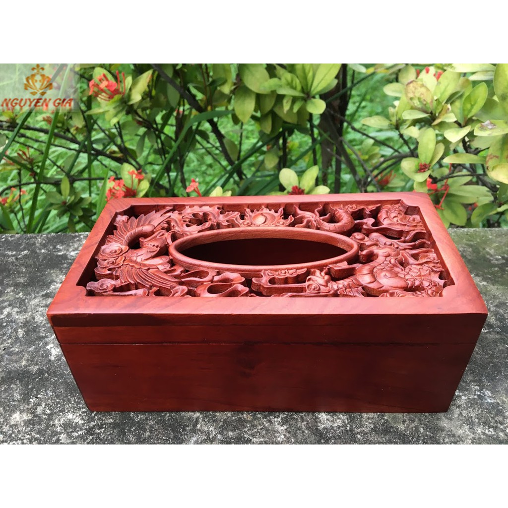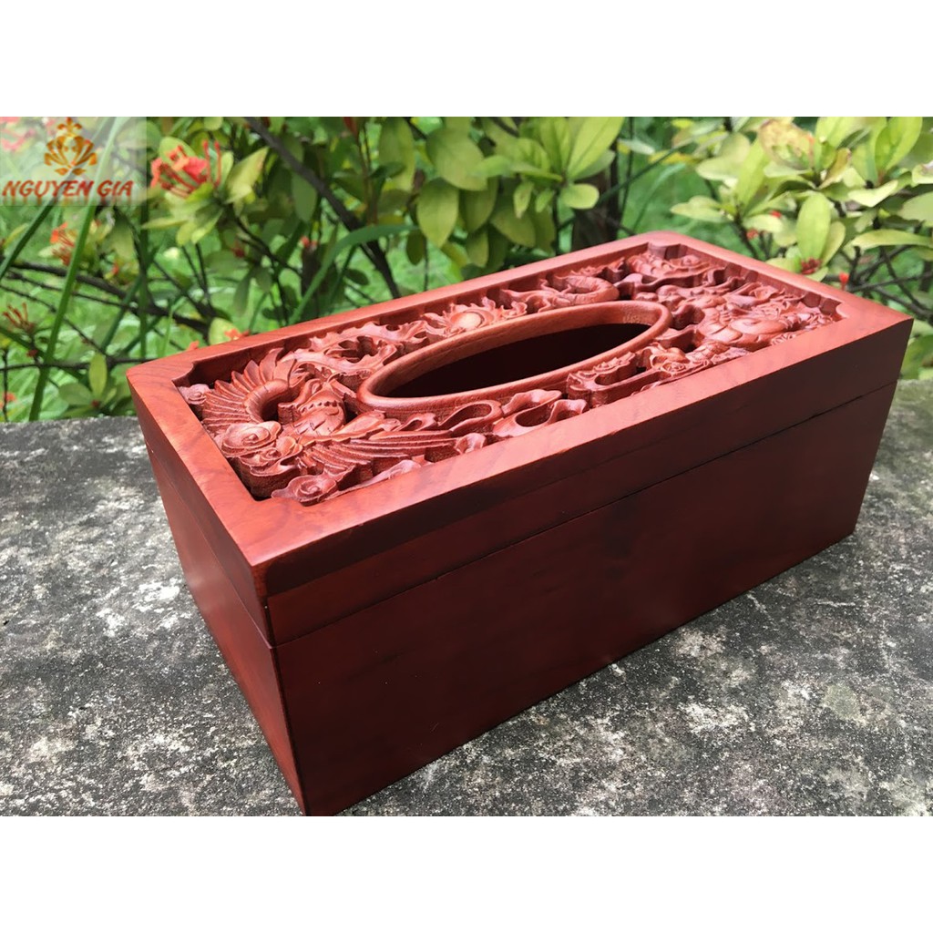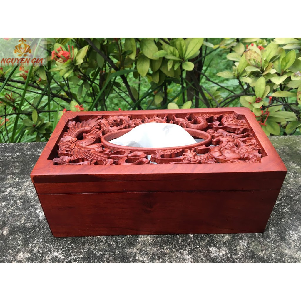 Nhà cửa & Đời sống > Sắp xếp nhà cửa > Hộp khăn giấy || [TRẠM KHẮC TINH XẢO] Hộp đựng khăn giấy bằng gỗ hương long phụng sum vầyCòn hàng