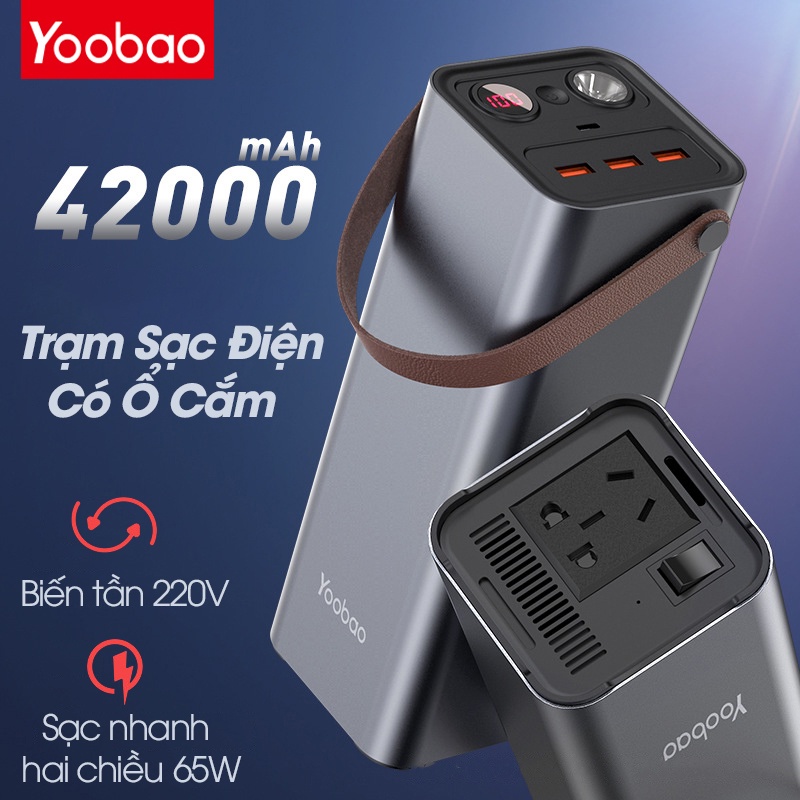 Trạm Sạc Điện Yoobao EN1 42000MAh, Sạc Nhanh Hai Chiều PD65W, Biến Tần Công Suất Lớn 220v, Có Đèn LED