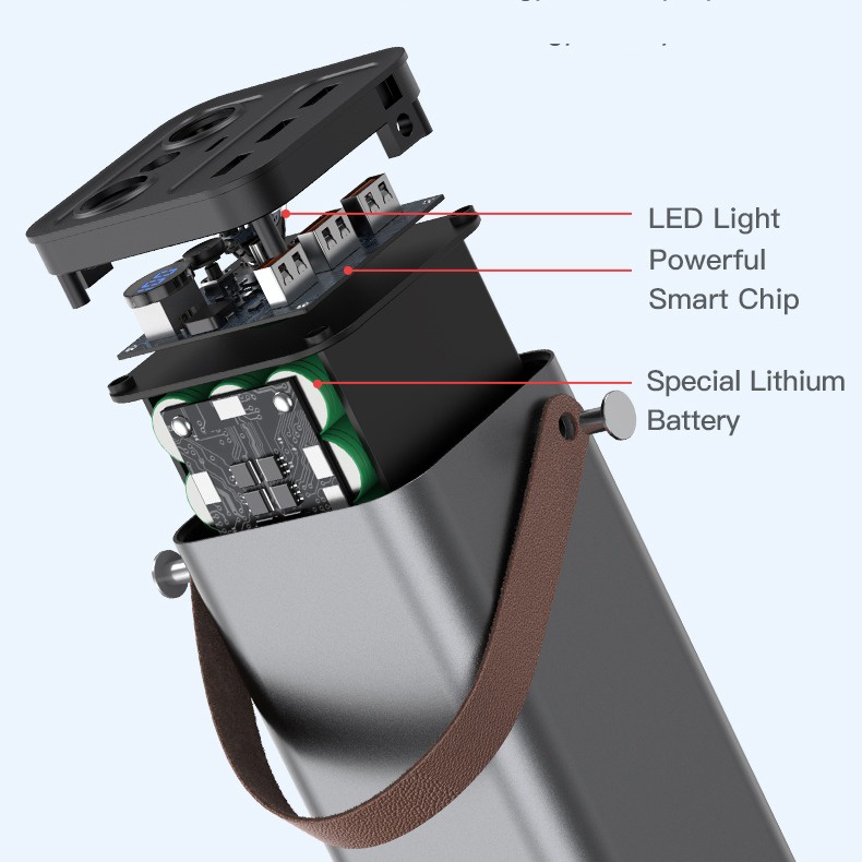 - Tích hợp đèn LED chiếu sáng như đèn pin và xách tay bằng da vô cùng tiện lợi.