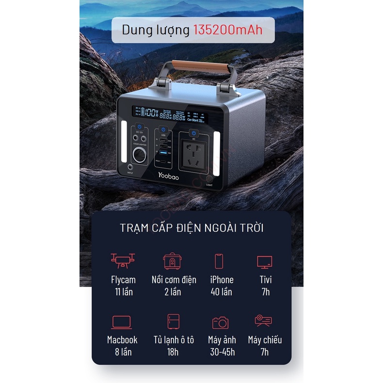 Điện Thoại & Phụ Kiện > Phụ kiện > Sạc dự phòng & Pin > Sạc dự phòng || Trạm sạc dự phòng 135200mAh Yoobao EN500 Sạc nhanh PD60W 220V/150W - Hàng chính hãng - Bảo hành 12 tháng 1 đổi 1Còn hàng