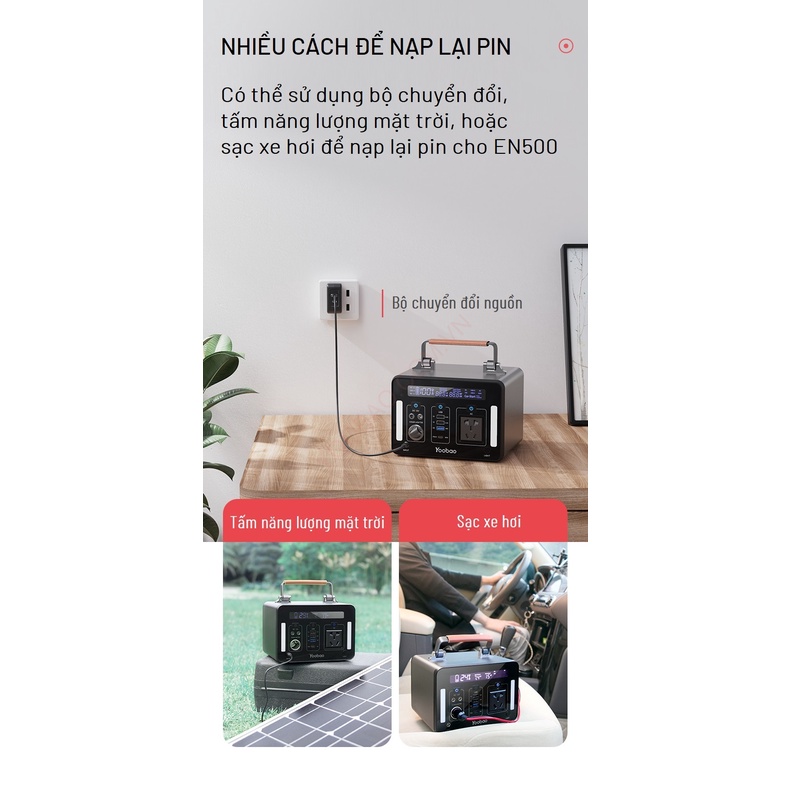Yoobao EN500 là trạm cung cấp năng lượng di động đa năng, một sản phẩm vô cùng mạnh mẽ và độc đáo dành cho bạn khi tham gia các hoạt động ngoài trời, dã ngoại,…