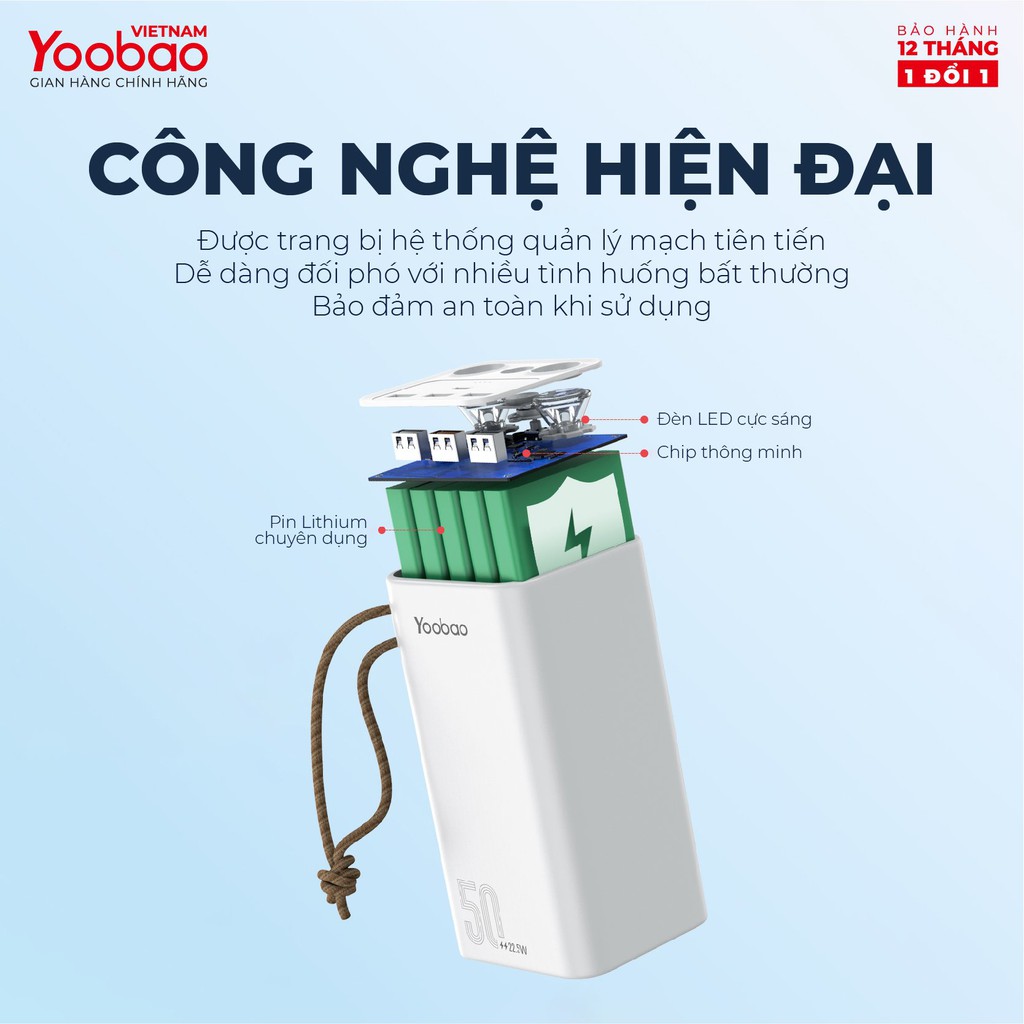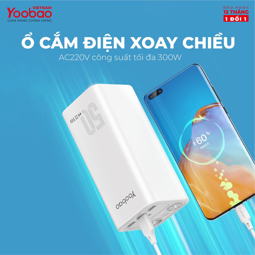Trạm sạc dự phòng 50000mAh Yoobao H5 4 Cổng sạc nhanh QC 3.0, PD - Đèn PIN siêu sáng - Hàng chính hãngTHỜI GIAN GIAO HÀNG SIÊU TỐC ĐỘ: