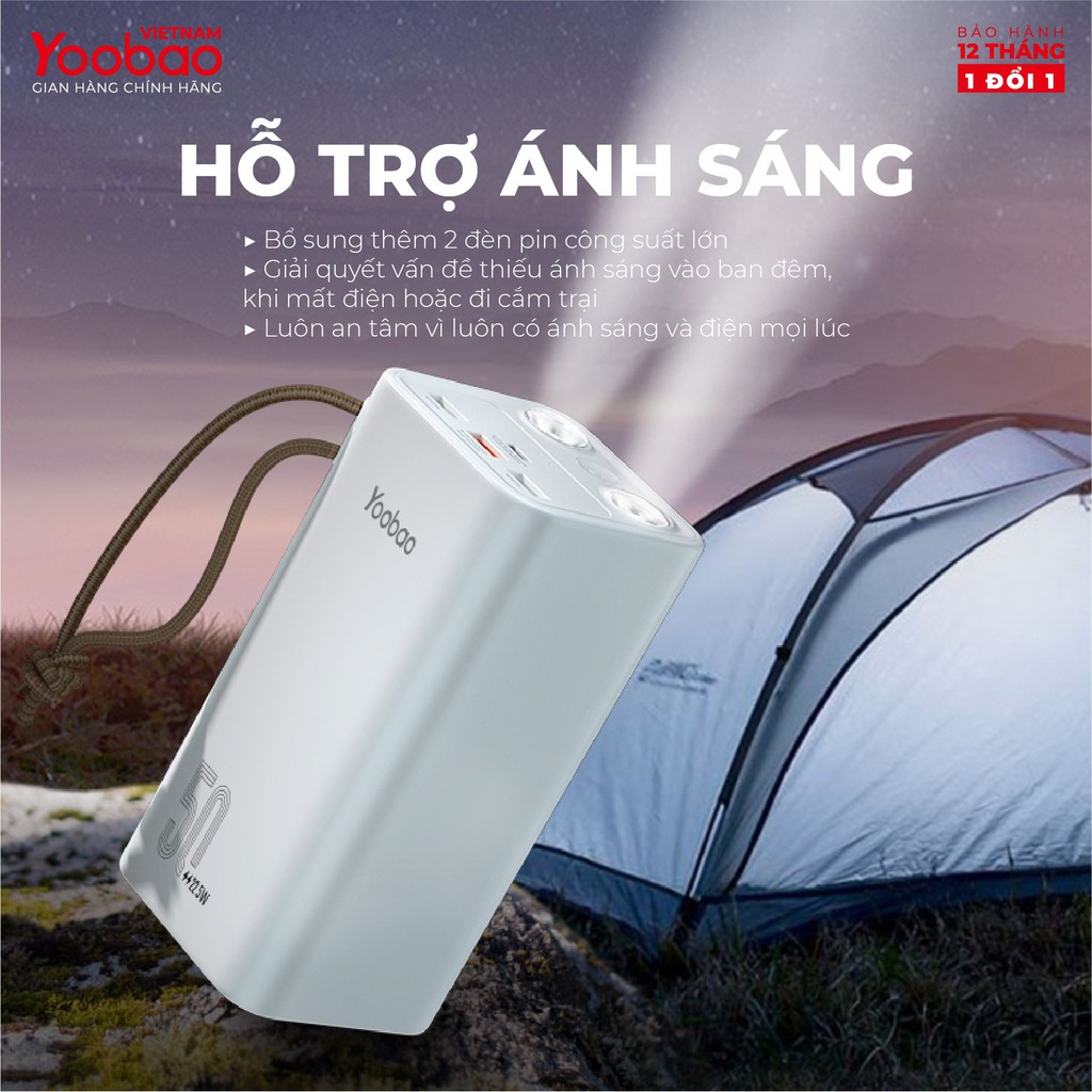 Trạm sạc dự phòng 50000mAh Yoobao H5 4 Cổng sạc nhanh QC 3.0, PD - Đèn PIN siêu sáng - Hàng chính hãng
