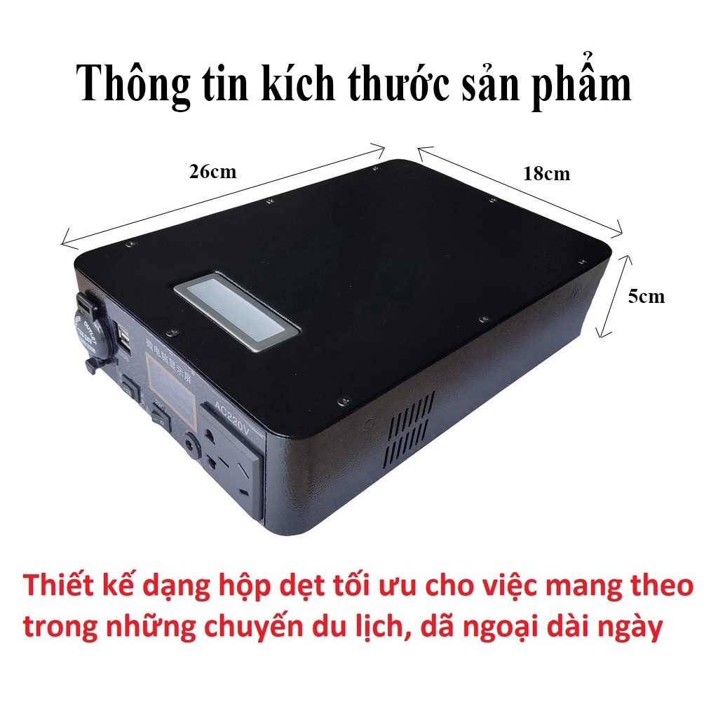 Với thiết kế dạng hộp dẹt, kích thước chỉ 26x18x5cm, rất gọn nhẹ nếu so với những sản phẩm khác cùng loại, trạm sạc dự phòng với dung lượng lên đến 100.000mAh và được dùng để sạc điện thoại, máy tính bảng, máy ảnh... để phù hợp mang theo trong những chuyển du lịch dã ngoại...