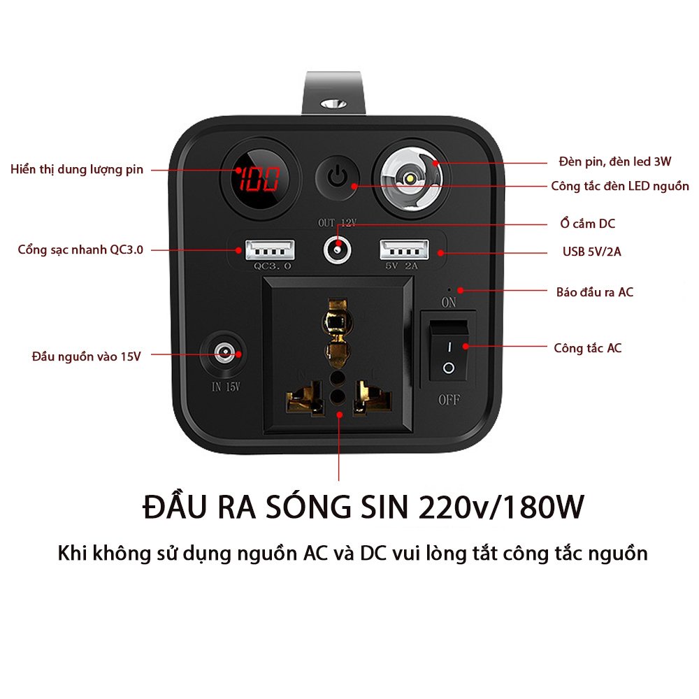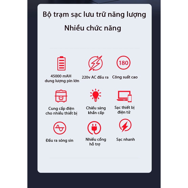 Trạm sạc dự phòng dụng lượng siêu khủng 45000mAh cổng điện 220V/200W tích hợ đèn Pin phù hợp đi du lịch❤❤❤Ưu điểm nổi bật