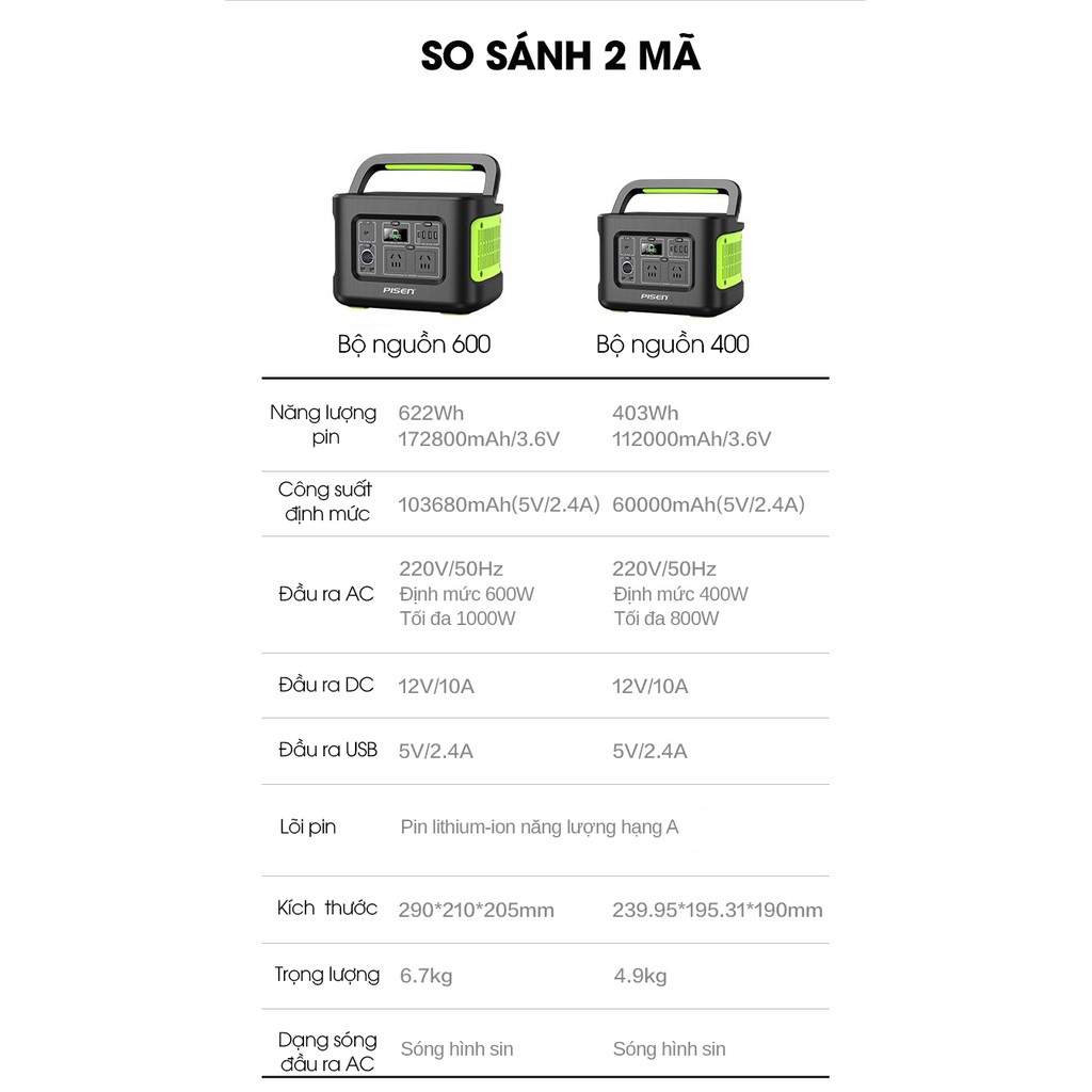 🍄 Sạc dự phòng Pisen Power Station 400Wh là bộ nguồn di động đa năng, chuyên nghiệp, tương thích với nhiều loại thiết bị điện. Với công suất cực lớn có thể cung cấp đủ nhu cầu điện cho bạn trong những chuyến dã ngoại, làm việc, chụp ảnh, quay phim ngoài trời hoặc cung cấp nguồn điện thiết yếu cho những khu vực điện lưới không ổn định, thường xuyên bị cúp điện hoặc các khu vực không có điện.🍄 Thiết kế đa giao diện cho nhiều loại thiết bị điện, sạc nhiều thiết bị cùng lúc mà không sợ nhiễu, không phải chờ đợi
