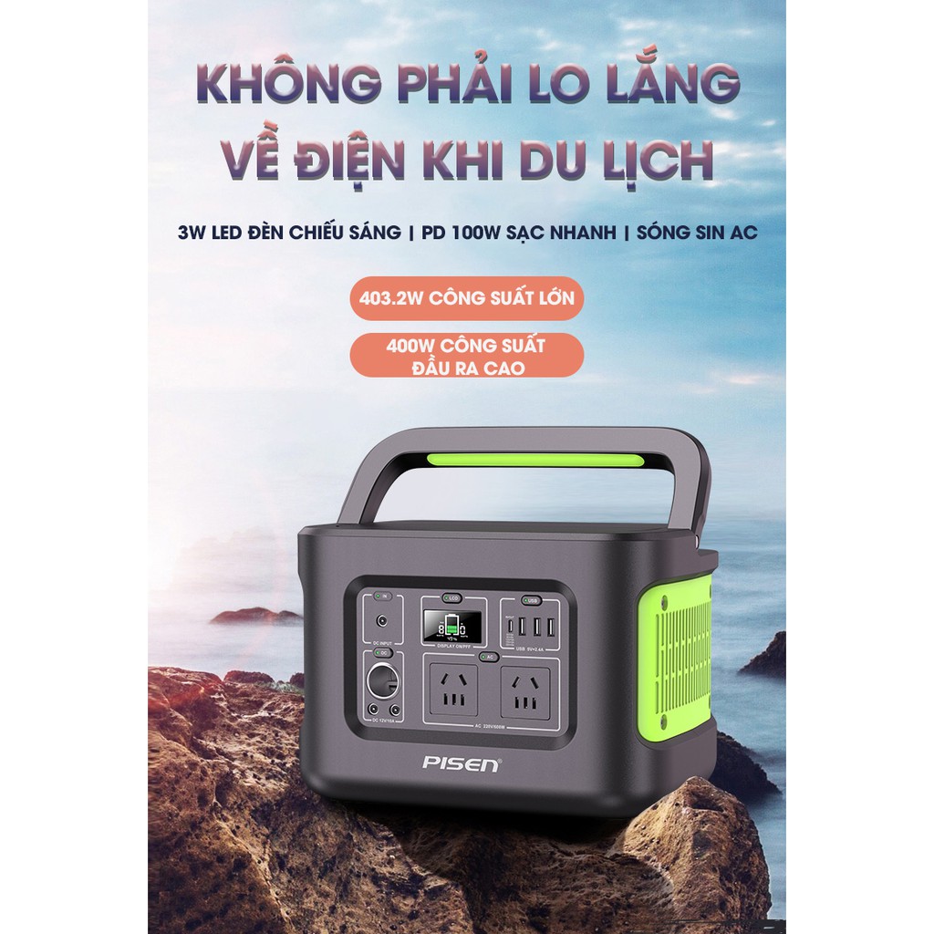 Trạm sạc dự phòng Pisen Power Station 400Wh - Hàng chính hãng