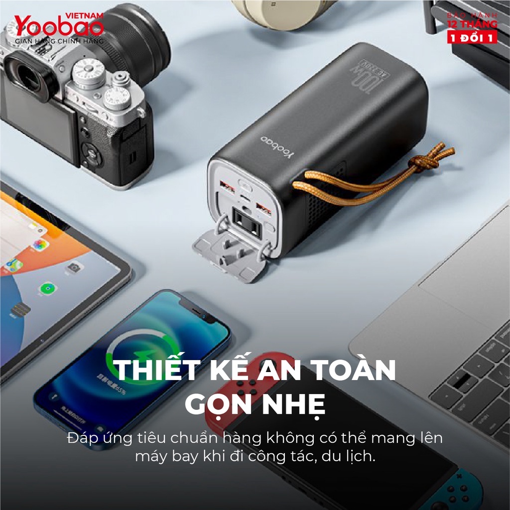 Trạm sạc dự phòng Yoobao EN100 dung lượng 20000mAh, tích hợp đèn pin PD45W 220V/100W