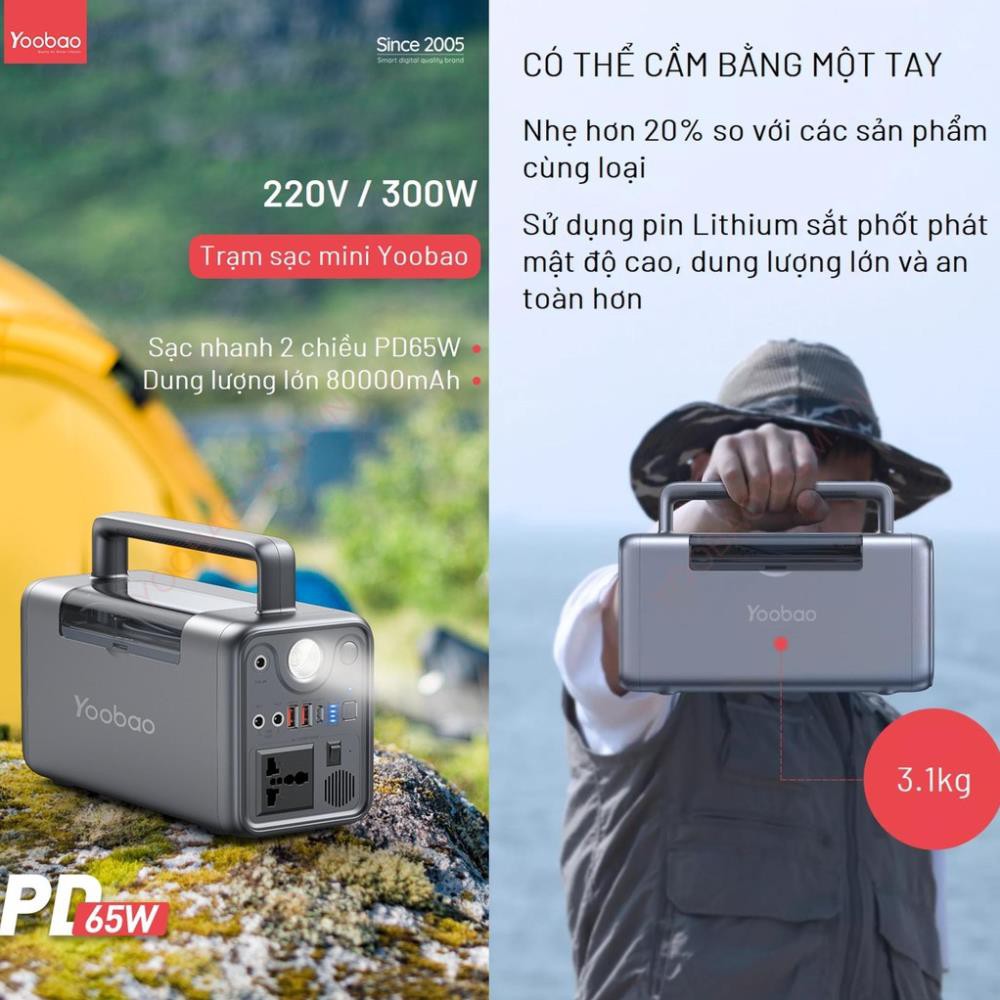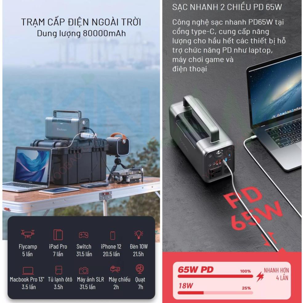 👉 Công suất cao dung lượng lớn nhưng YOOBAO 65W 80000MAH tổng Công suất 300W cực nhỏ gọn với trọng lượng 3kg tiện lợi mang du lịch công việc bất cứ đâu,