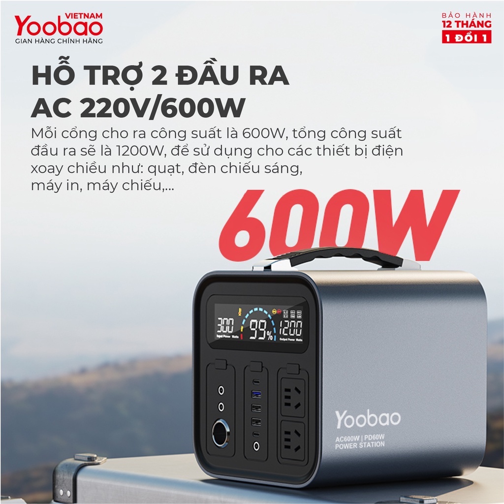 Trạm sạc dự phòng Yoobao EN600S Dung lượng 148800Mah Sạc nhanh PD60W 220V/600W Màn hình LED - Tích hợp đèn pin