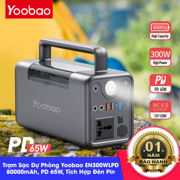[CHÍNH HÃNG]Trạm sạc dự phòng Yoobao EN300WLPD dụng lượng 80000mAh cổng 220V/300W tích hợp đèn Pin phù hợp đi du lịch