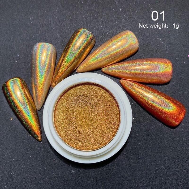 BỘT TRÁNG GƯƠNG CẦU VỒNG DẠNG NÉN SIÊU MỊN BÁM MÓNG LÊN MÀU CỰC ĐẸP HŨ 0.5g- BỘT TRÁNG GƯƠNG CẦU VỒNG DẠNG NÉN SIÊU MỊN là một phụ liệu trong bộ trang trí móng, được sử dụng trong việc tạo điểm nhấn cho bộ móng phù hợp với nhu cầu của khách hàng. Sản phẩm là sự kết hợp hoàn hảo giữa bột và nhũ sáng siêu mịn tạo hiệu ứng tráng gương với màu sắc cầu vồng đẹp mắt, sang trọng rất dễ pha phối trang trí. Dùng được cho cả những người mới bắt đầu học cũng như thợ chuyên nghiệp trong các tiệm nail.