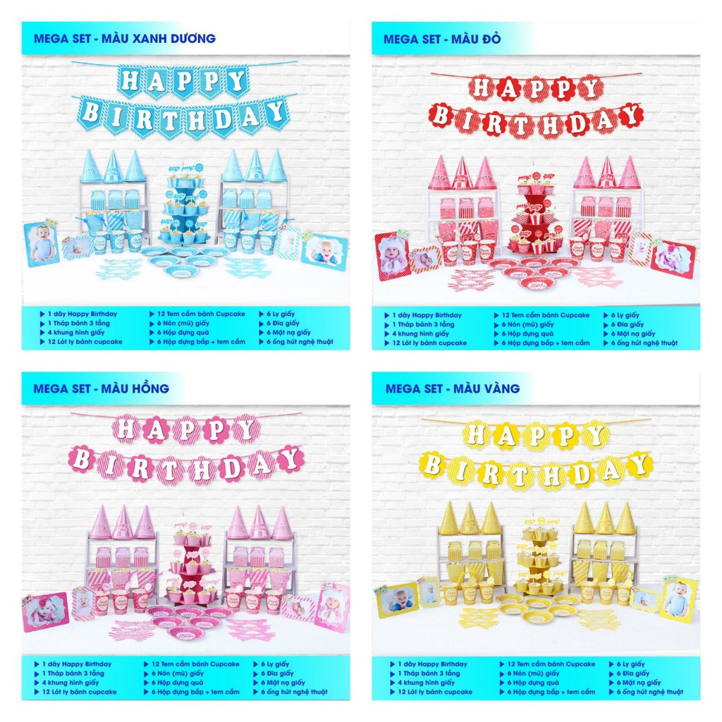 Bộ Trang Trí Để Bàn Tiệc Sinh Nhật bao gồm:1 Dây HPBD