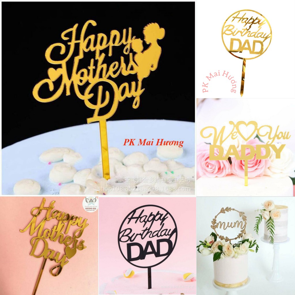 MÔ TẢ : Trang Trí Bánh Sinh Nhật Bánh Kem - COMBO 10 thẻ meka DAD, DADDY, MOTHER, MUM
