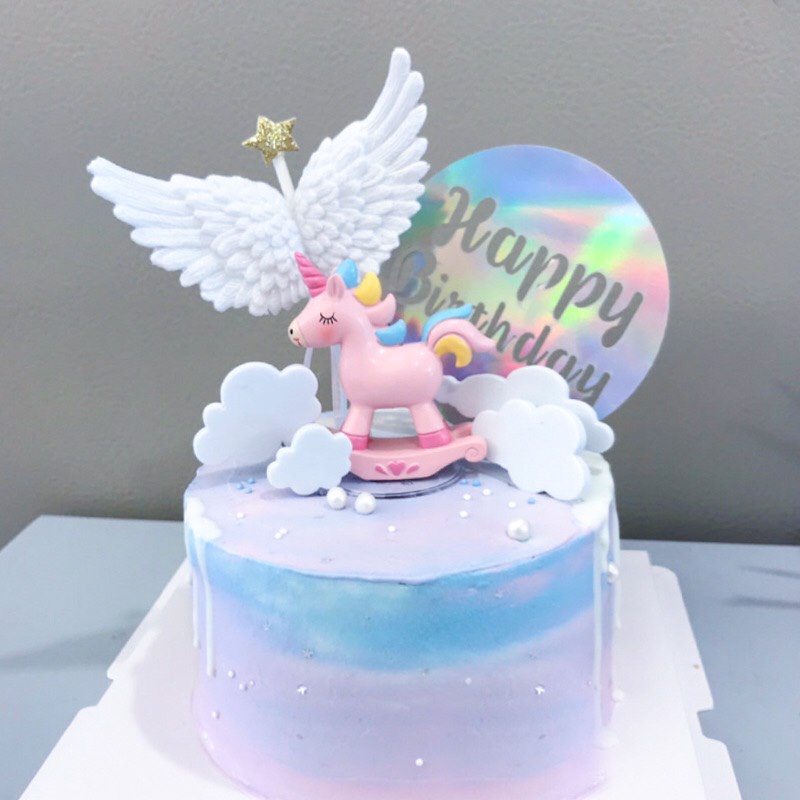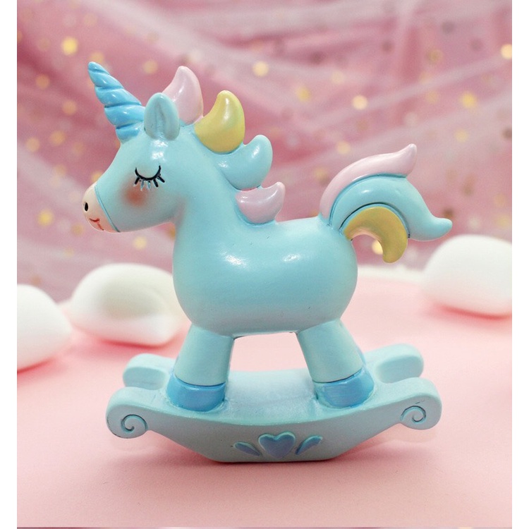 Trang trí bánh sinh nhật, bánh kem - cặp đôi ngựa 1 sừng bập bênh ( 2 bé )