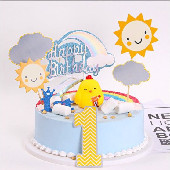 Giới thiệu Trang Trí Bánh Sinh Nhật Bánh Kem - SÉT CẮM THẺ 1 TUỔI