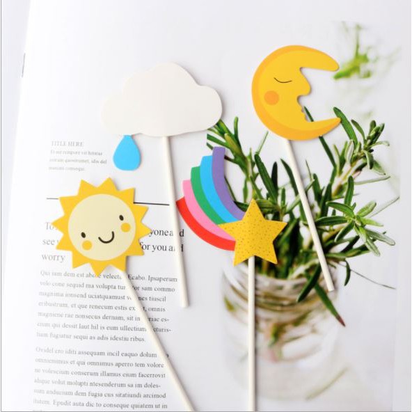 - SET THẺ CẮM MẶT TRỜI TRĂNG MÂY NHỎ trang trí bánh sinh nhật, bánh kem được làm bằng giấy cao cấp loại 1, an toàn khi sử dụng