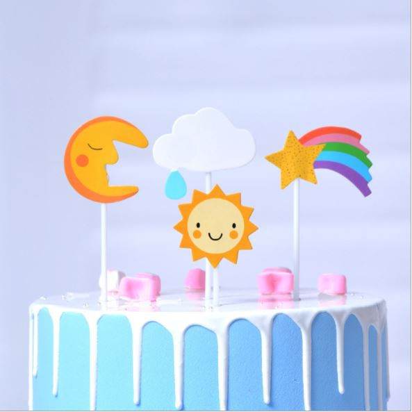Giới thiệu Trang trí bánh sinh nhật, bánh kem cho bé trai bé gái - SET THẺ CẮM MẶT TRỜI TRĂNG MÂY NHỎ