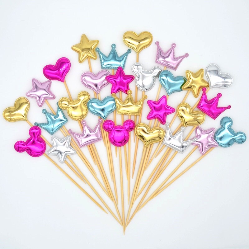 Trang trí bánh sinh nhật, bánh kem cho bé trai bé gái - SET CẮM TIM, SAO, MIỆN DA PHỒNG
