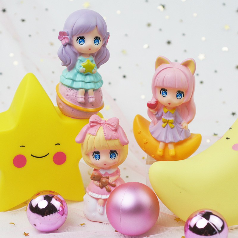 Giới thiệu Trang trí bé gái tóc hồng ngồi trên mặt trăng