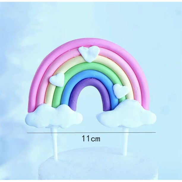 Trang trí cầu vồng hồng + tim, mây_Phụ kiện trang trí bánh sinh nhật