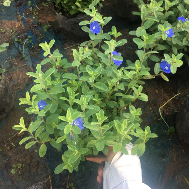 Cây Thanh Tú thuộc dạng thân thảo, mọc theo bụi, cây cao khoảng 20 – 70cm. Dù thuộc họ Bìm Bìm nhưng cây không leo mà phân cành và nhánh nhiều nên rất thích hợp làm cây trồng ban công. Lá cây Thanh Tú là dạng lá đơn, mọc cách hình trái xoan. Bề mặt lá có lớp lông mỏng, mềm, mịn. Thân cây mọng nước và có màu nâu đỏ.Hoa Thanh Tú có màu xanh dương rất đẹp và bắt mắt. Hoa thường mọc ra từ nách lá tập trung phía đầu cành. Hoa Thanh Tú nhỏ xinh gồm 5 cánh mỏng, mềm, hơi tròn. Nhụy hoa màu trắng hình ngôi sao. Cây Thanh Tú rất sai hoa và hoa nở quanh năm.