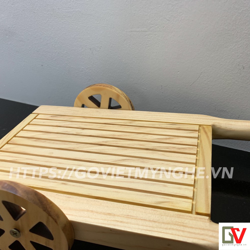 MÔ TẢ SẢN PHẨM:+ Khay gỗ được thiết kế theo hình xe kéo bò thực tế, bánh xe quay được. Một phiên bản thu nhỏ của xe kéo bò.