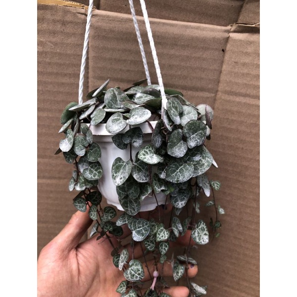 Nhà cửa & Đời sống > Làm vườn > Cây cảnh || [ TRANG TRÍ ] MỘT CHIẾC CEROPEGIA WOODII ( Strings Of Heart - Chuỗi Tim Cẩm Thạch ) Cây Kèm Chậu, Móc Treo Như Ảnh ẹ ❣️Còn hàng