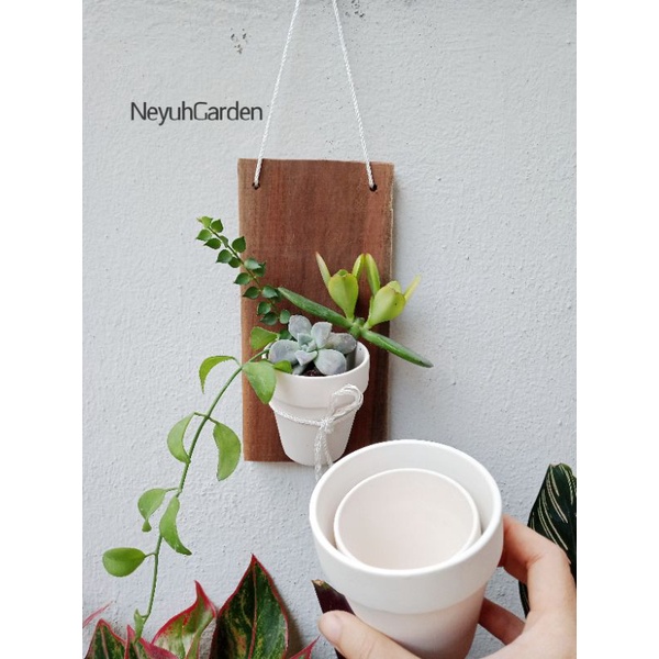 - Bộ sản phẩm được đóng gói đầy đủ gồm: 1 Tấm ván + 1 Chậu sứ 8cm trắng + Dây dù trắng + Đinh 3 chân