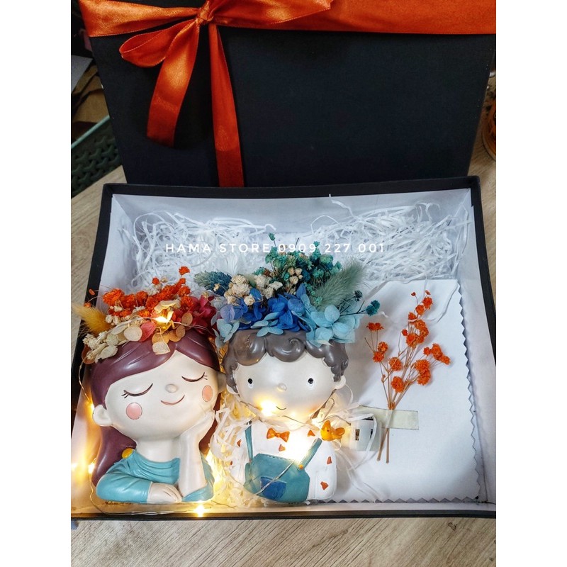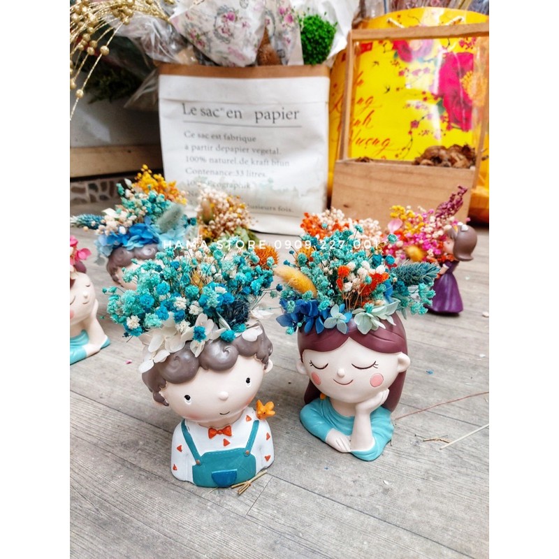 Lọ hoa trang trí hình cô gái HandMade 100% phối các loại hoa khô cao cấpKích thước cả lọ và hoa 15-18cm, xoè khoảng 8-9cm