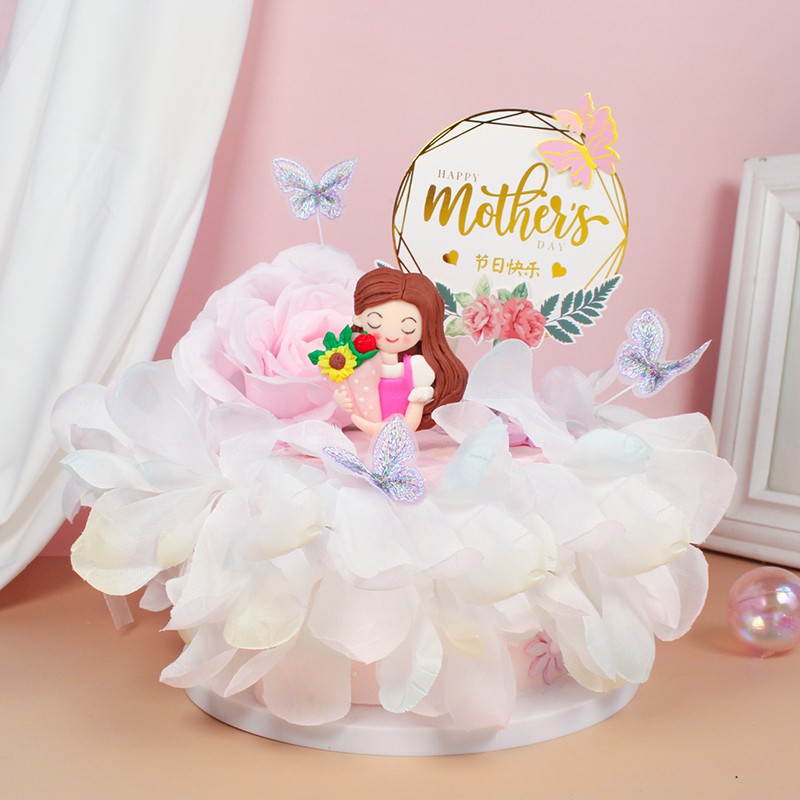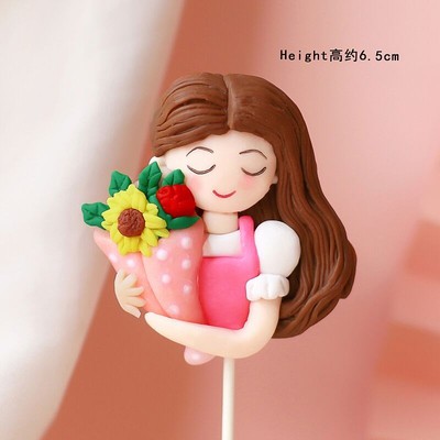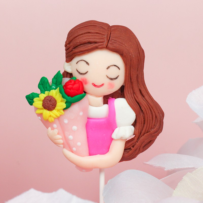 Giới thiệu Trang trí silicon cô gái ôm bó hoa áo hồng