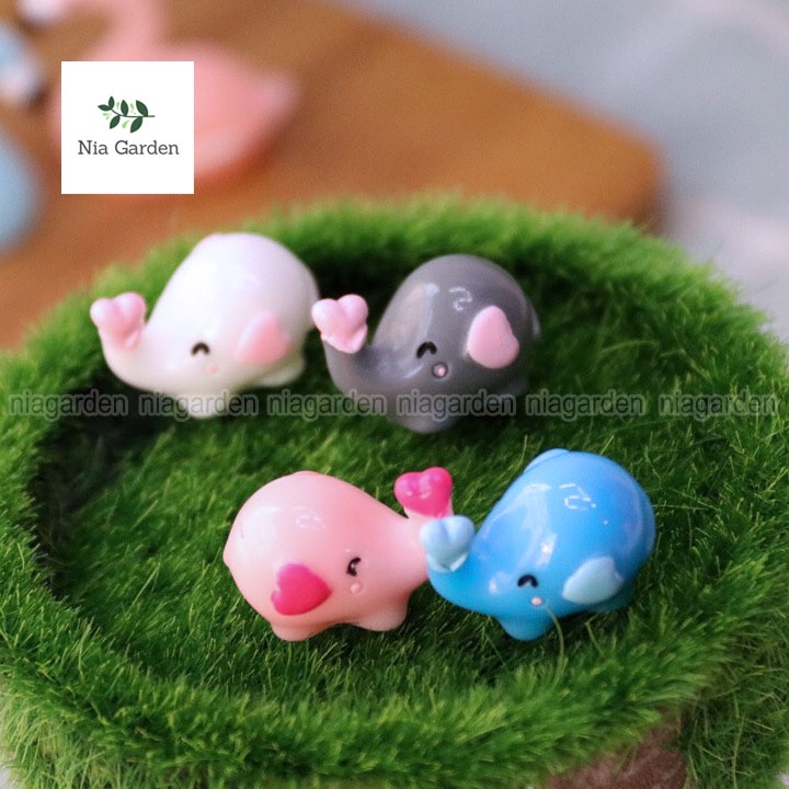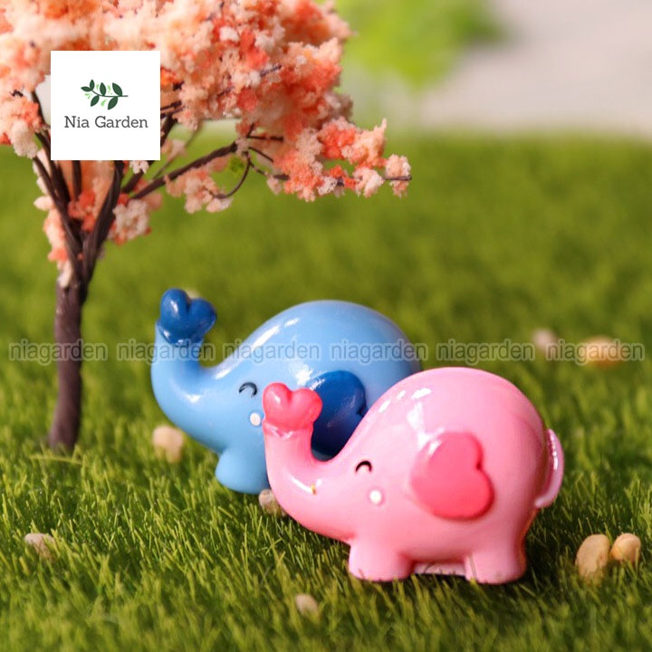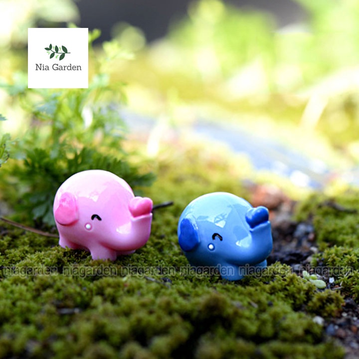 Trang trí tiểu cảnh chậu cây vườn mini mô hình chú voi hồng xanh Nia Garden N5