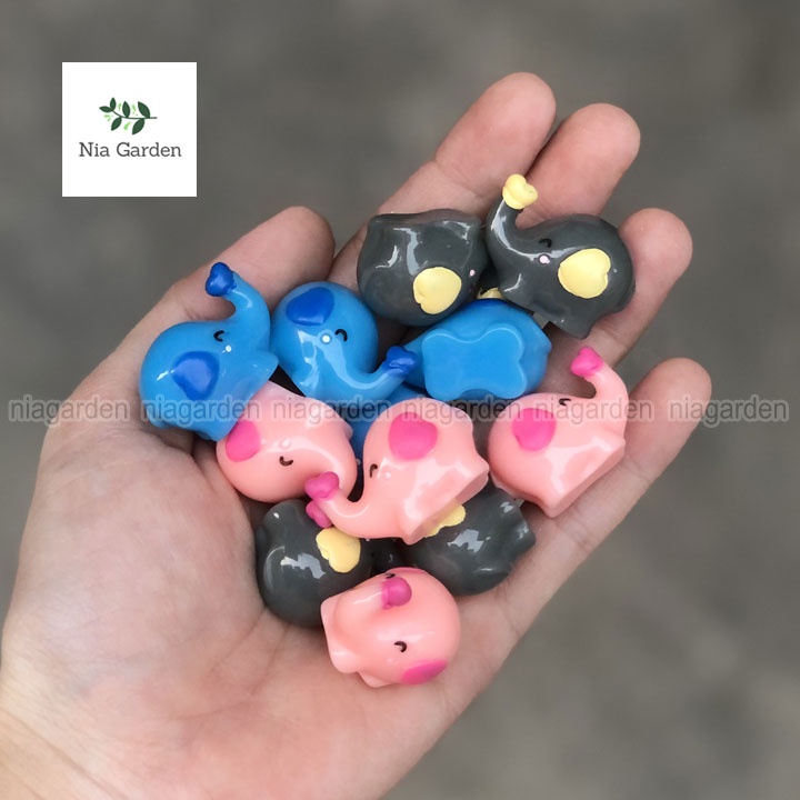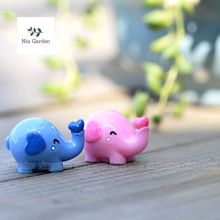 Giới thiệu Trang trí tiểu cảnh chậu cây vườn mini mô hình chú voi hồng xanh Nia Garden N5