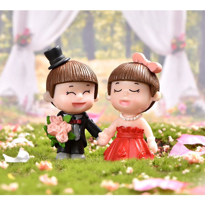 Tượng cặp đôi cô dâu chú rể kiểu chibi trang trí tiểu cảnh, trang trí bánh kemGiá 20k 1 cặp
