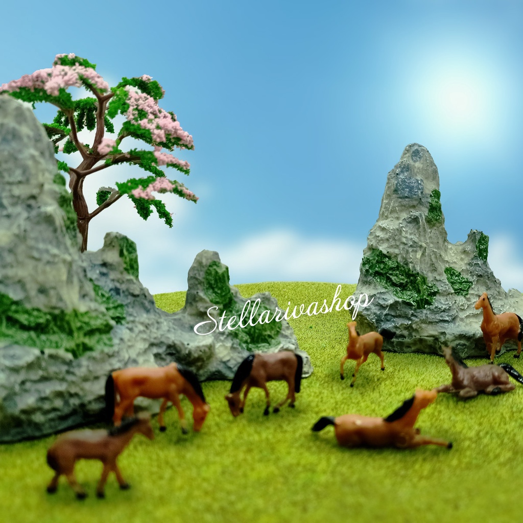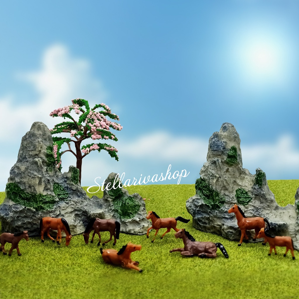 Trang trí tiểu cảnh, terrarium mô hình núi đá lớn, ngựa mini trang trí vườn, chậu cây , tiểu cảnh bán cạn