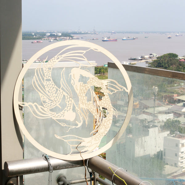 Trang trí tường bằng gỗ biểu tượng cá Koi