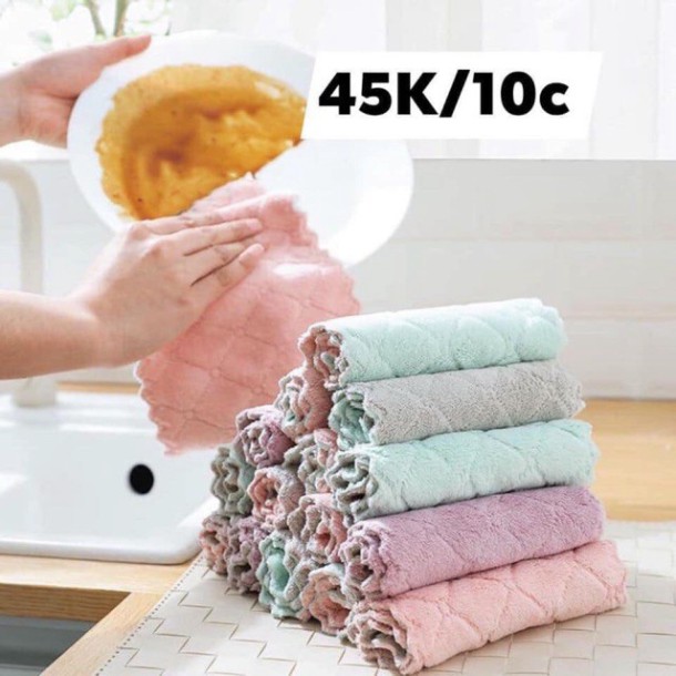 Khăn này siêu thấm nước, thiết kế sz nhỏ nhỏ vừa vừa 27.5 x 16cm cầm lau chén bát hay lau bếp cũng vừa tay gọn gàng. Mặt khăn thiết kế 2 màu toàn các màu xinh xinh nhẹ nhàng.