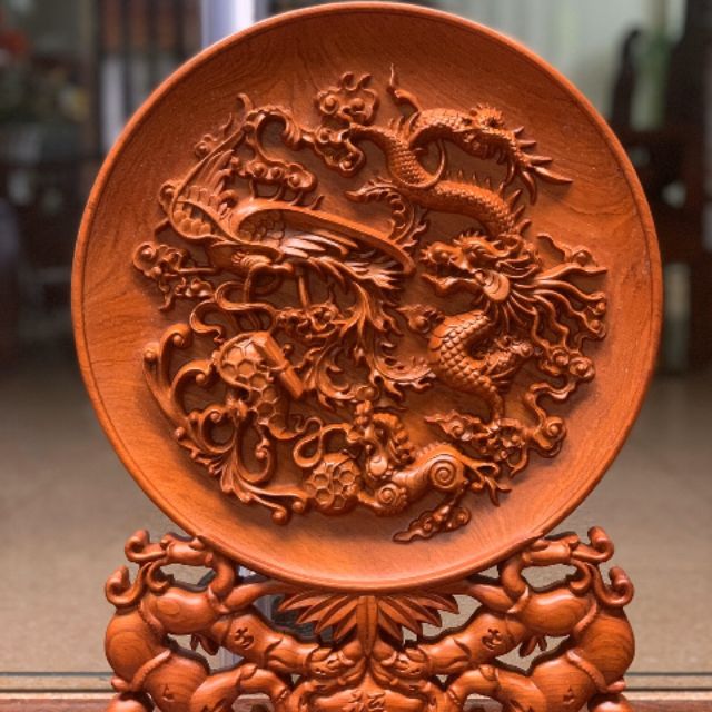 Miêu Tả: sản phẩm được làm từ gỗ hương đá nguyên khối. trạm khắc bộ 1 linh (long- ly- quy- phụng) cực kì tinh xảo và tỉ mỉ. các đường nét các kì dẻo và uyển chuyển. sản phẩm được chọn lựa gỗ kĩ càng, vân đẹp. không bị dập nứt.
