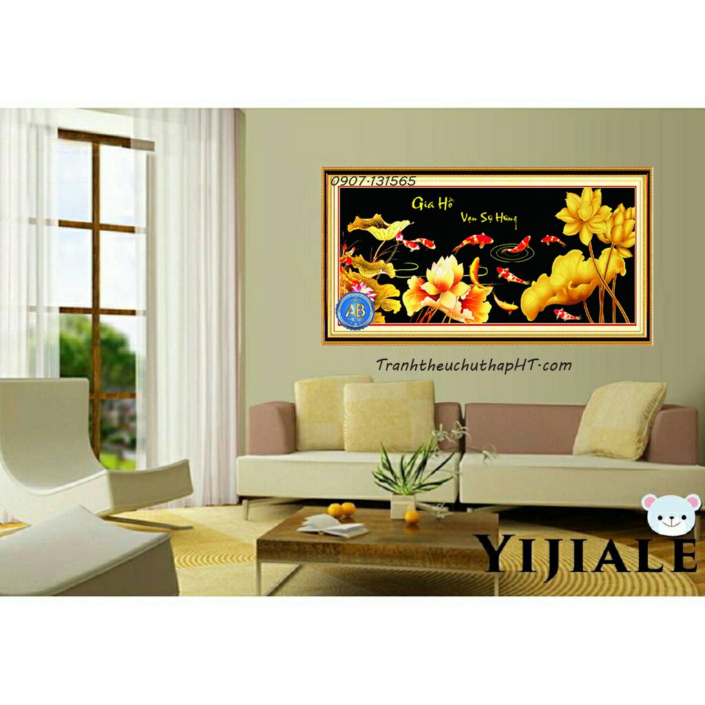 Giới thiệu Tranh đính đá 9 cá sen vàng VS118 – Tự đính