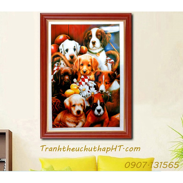 Tranh đính đá bầy cún đáng yêu mẫu rất đẹp, đính hết toàn bộ bức tranh màu sắc sáng đẹp lung linh đặc biệt do tự tay mình làm thì thật thú vị.Kích thước 50*64cm.
